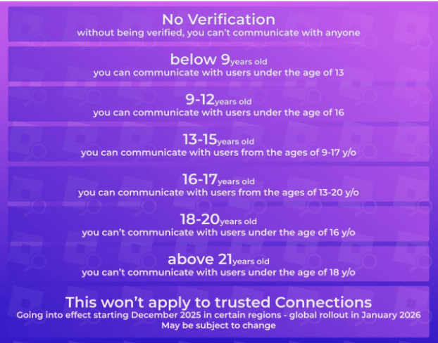 I have around 40 online friends that I talk to everyday. They’re all around 13-15 and with me being put into the 18-20 group this is a nightmare. I cannot communicate with them unless I call them from a different site, for example Discord. But according to Roblox TOS, you cannot direct users off-platform, which is what Schlep allegedly did. Roblox calls this ‘unsafe’, however many users still do this anyway. A friendly reminder that Discord also faces huge backlash about their child safety regulations. There are many other users who have been placed into the wrong category. One of my online friends is 19 and was detected to be 28, showing how inaccurate this AI really is.